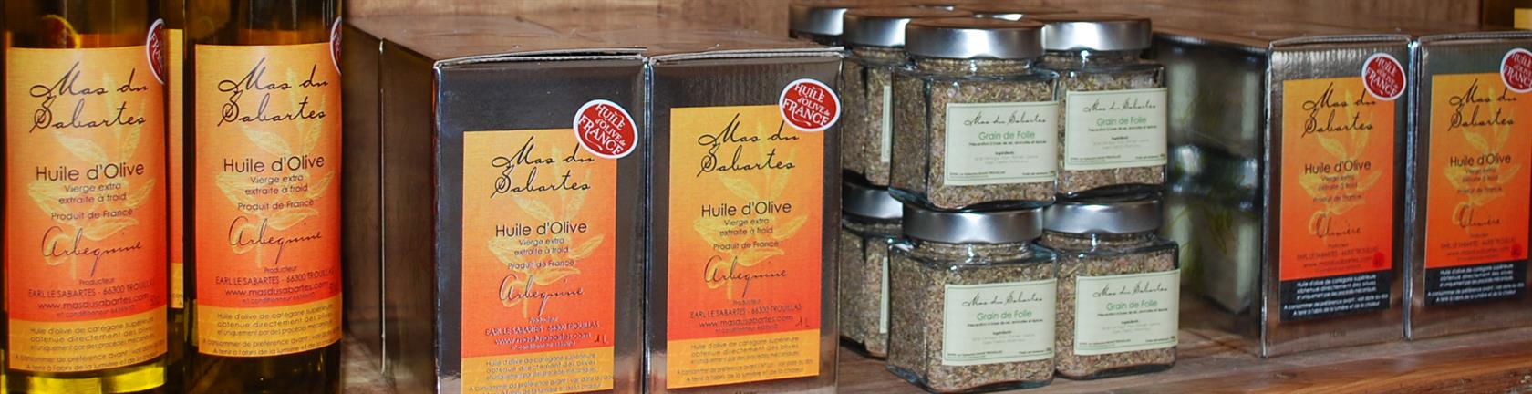 Huile d'olive, confitures artisanales et produits de terroir du Mas du Sabartes.