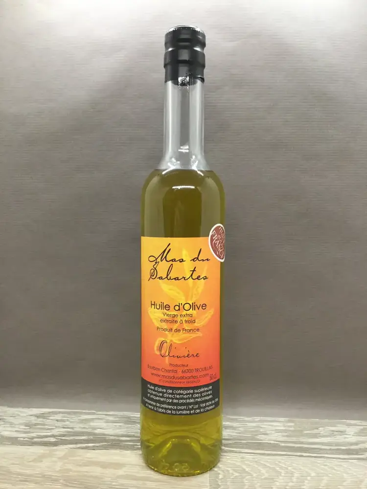L'huile d'olive du Mas du Sabartes est une huile vierge extra extraite à froid et élaborée à partir d'olives "Olivière".