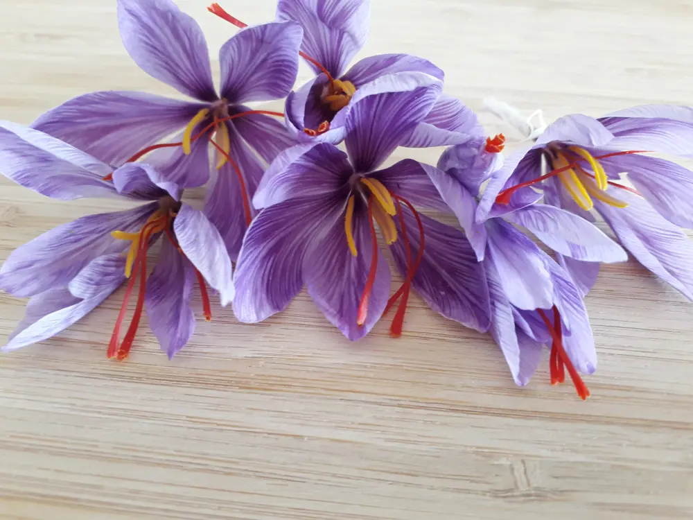 Les bulbes de Crocus Sativus donnent à l’automne de belles petites fleurs fragiles, que nous récoltons tôt le matin pour qu’elles ne soient pas altérées par les rayons du soleil encore intenses à cette période dans notre région.