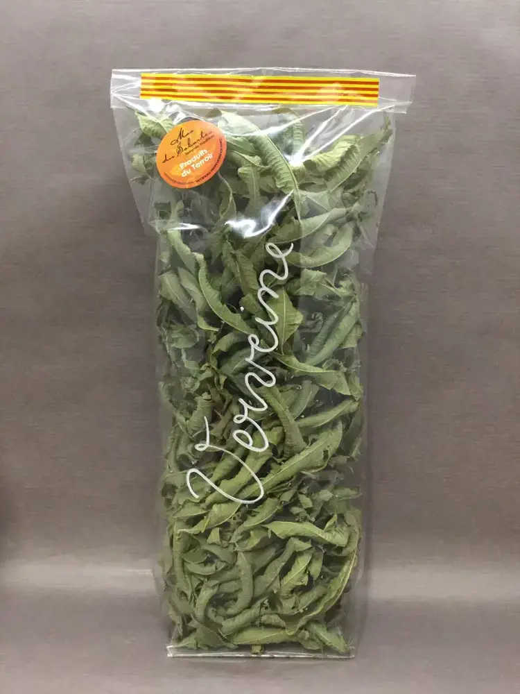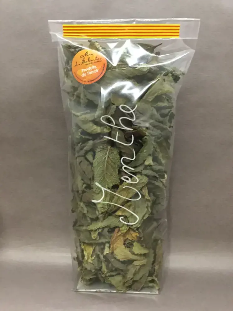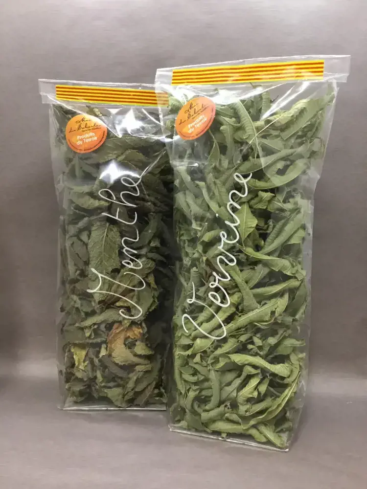 Feuilles séchées de menthe douce et de verveine officinale pour tisanes et infusions.